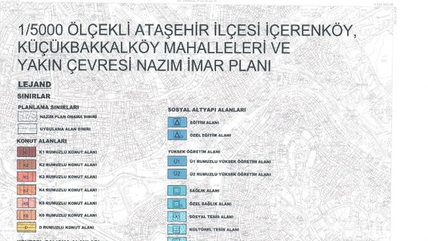 İstanbul Anadolu Yakası Ataşehir ilçesine bağlı İçerenköy ve Küçükbakkalköy mahalleri ve yakın çevresine ilişkin 1/5000 ölçekli nazım imar planı askıya çıktı.
