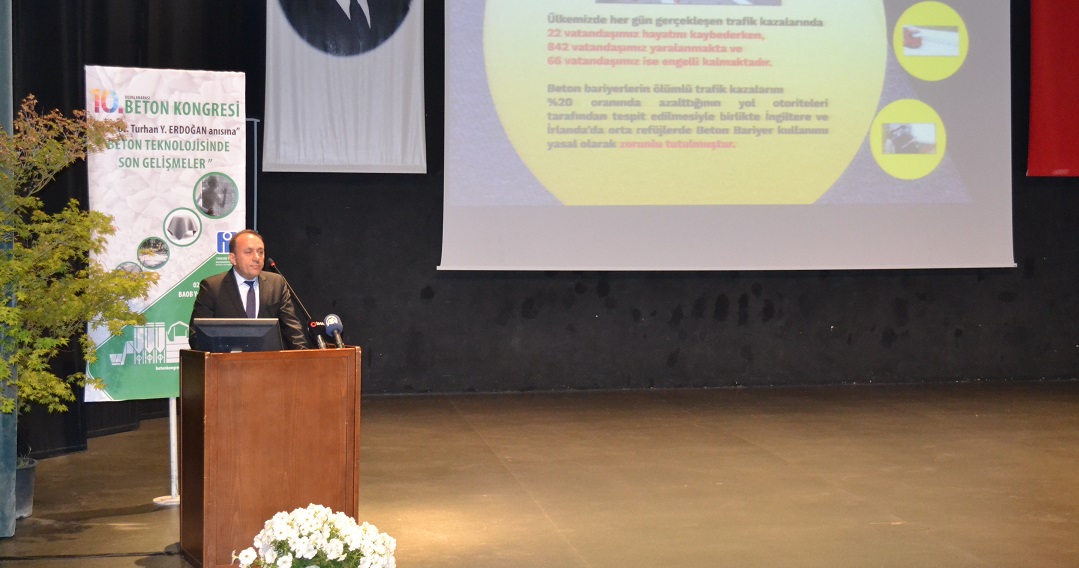 Kongrede Türkiye Çimento Müstahsilleri Birliği (TÇMB) CEO’su İsmail Bulut sunumla yer aldı. Sunumunda ülkemizde her gün gerçekleşen trafik kazalarında 22 vatandaşımızın hayatını kaybettiğini, 842 vatandaşımızı yaralandığını ve 66 vatandaşımızın ise engelli kaldığının altını çizen Bulut, Beton Bariyerlerin ölümlü kaza oranını %20 azalttığını belirtti. Trafikte motosikletle yer alan vatandaşlarımız için de en güvenli çözümün beton bariyerler olduğunu belirten Bulut, “Bariyere çarpan bir motosikletlinin hayatını kaybetme ihtimali bir otomobil sürücüsünden 7 kat daha fazladır. Bu nedenle motosikletliler için beton bariyerlerin kullanılması gerektiğini vurgulamakta fayda var. Bizler bu noktada bir sivil toplum kuruluşu olarak vatandaşlarımızın güvenliğinin en yüksek düzeyde sağlanması için çalışıyoruz.” şeklinde konuştu.