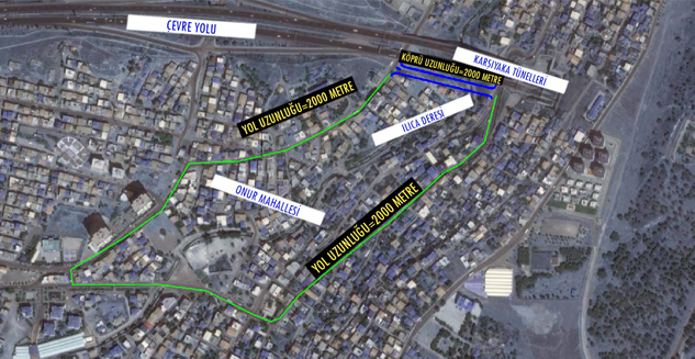 Yeni bağlantı sayesinde Onur Mahallesi’nden çevre yoluna ulaşmak isteyen vatandaşlar, halen 2 km'yi bulan yolu sadece 200 metrede aşabilecek. Toplam 190 metre uzunluğundaki ayaklı köprüde yol 2 gidiş, 2 geliş olmak üzere 4 şeritte verilecek. Ayrıca Onur Mahallesi’yle çevre yolu bağlantısını kuracak projede de yaklaşık 750 metrelik hatta, 70 metrelik istinat duvarı yapıldı ve halen 1 şerit gidiş-1 şerit geliş olan yol genişletilerek 2 şerit geliş-2 şerit gidiş olacak şekilde yeniden düzenlendi. Çalışmalar yüzde 90 oranında tamamlandı.