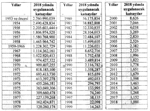 1/3/1982-31/12/1982 arasındaki tarihleri taşıyan (bu tarihler dâhil) müteahhitlik karneleri miktarı, grubu aynı kalmak şartıyla; 32.330,335 ile çarpılacak.