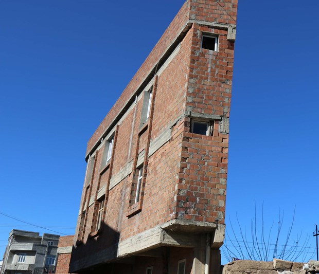 Şanlıurfa'nın Şirinkuyu Mahallesi'nde, Selahattin Gül'e ait 3 katlı bina farklı görüntüsüyle dikkat çekiyor.
