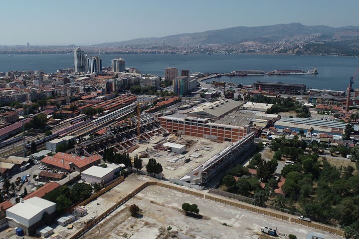 İzmir futbolu ve tarihi için önemli bir yere sahip olan İzmir Alsancak Stadı yükselmeye devam ediyor.İnşaat çalışmaları aralıksız devam ederken ilk kez havadan görüntülendi.
