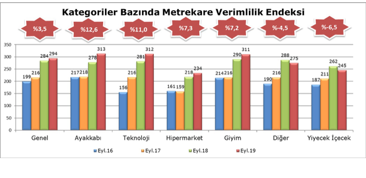 Eylül ayında, kategoriler bazında metrekare verimliliğinde en yüksek artış ayakkabı kategorisinde yaşandı. Ayakkabı kategorisi metrekare verimliliği geçtiğimiz yılın aynı dönemine göre enflasyondan arındırılmadan yüzde 12,6’lık bir artış gösterdi.