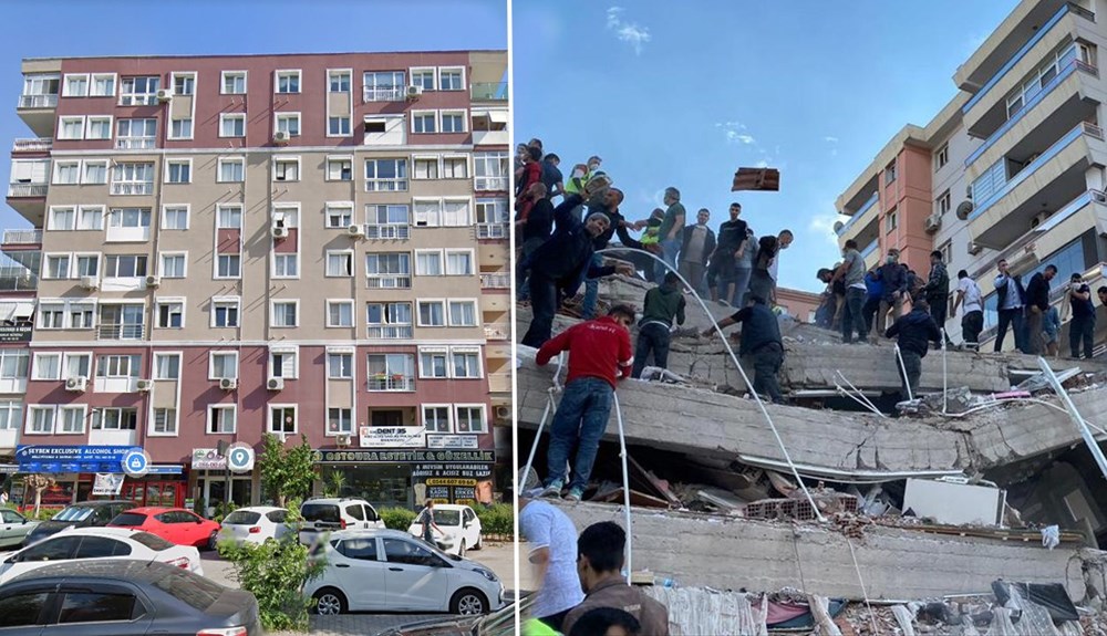 İzmir'de dün yaşanan 6.6 büyüklüğe sahip deprem sonucunda yıkılan Bayraklı'da bulunan 8 katlı binanın yıkılmadan önceki fotoğrafı depremin şiddetini ortaya çıkardı.
