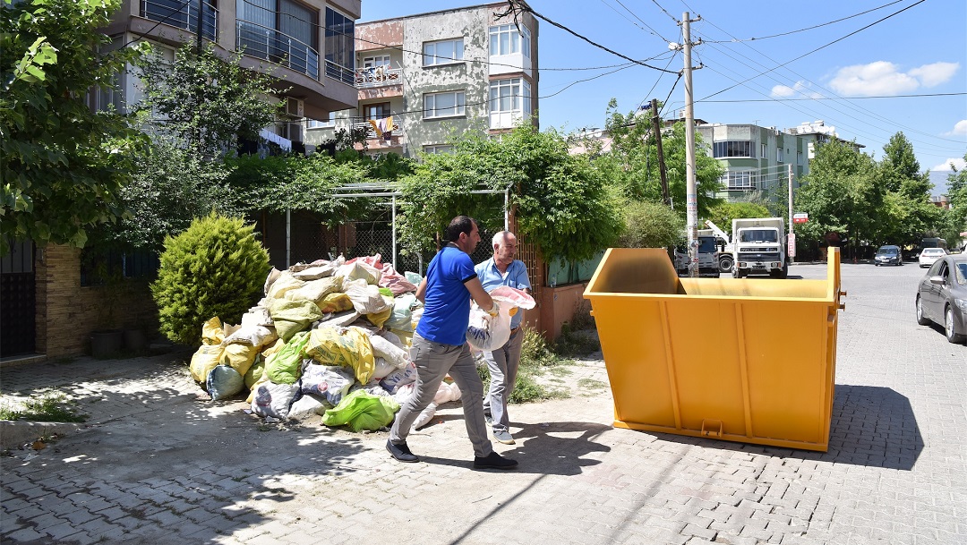 Randevulu ve konteynerli moloz toplama hizmetini de başlatan Bornova Belediyesi, 100 çuvala kadar molozları vatandaşların evlerinin önünden ücreti karşılığında alıyor.