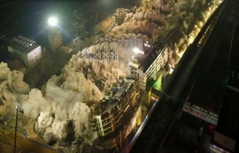 Çin'de 165 milyon TL'ye yapılacak kültür kompleksi için 19 apartmana yıkım kararı çıkarıldı. Her biri 12 katlı 19 bina 5 ton patlayıcıyla 10 saniyede yıkıldı.