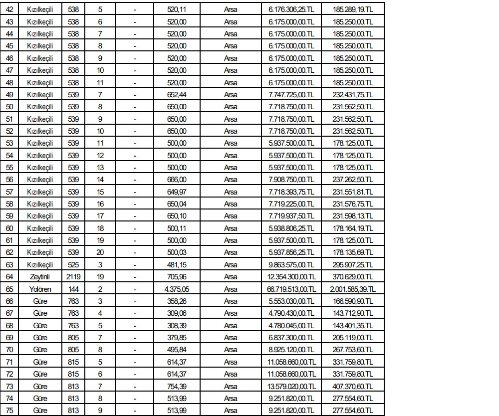 Balıkesir Edremit Belediye Başkanlığı, kendisine ait 75 adet arsayı satışa çıkarıyor. En düşüğü 4 Milyon TL’den başlayan ve 66 Milyon TL’ye kadar uzanan arsaların satış ihalesi 17 Aralık Salı günü gerçekleşecek.