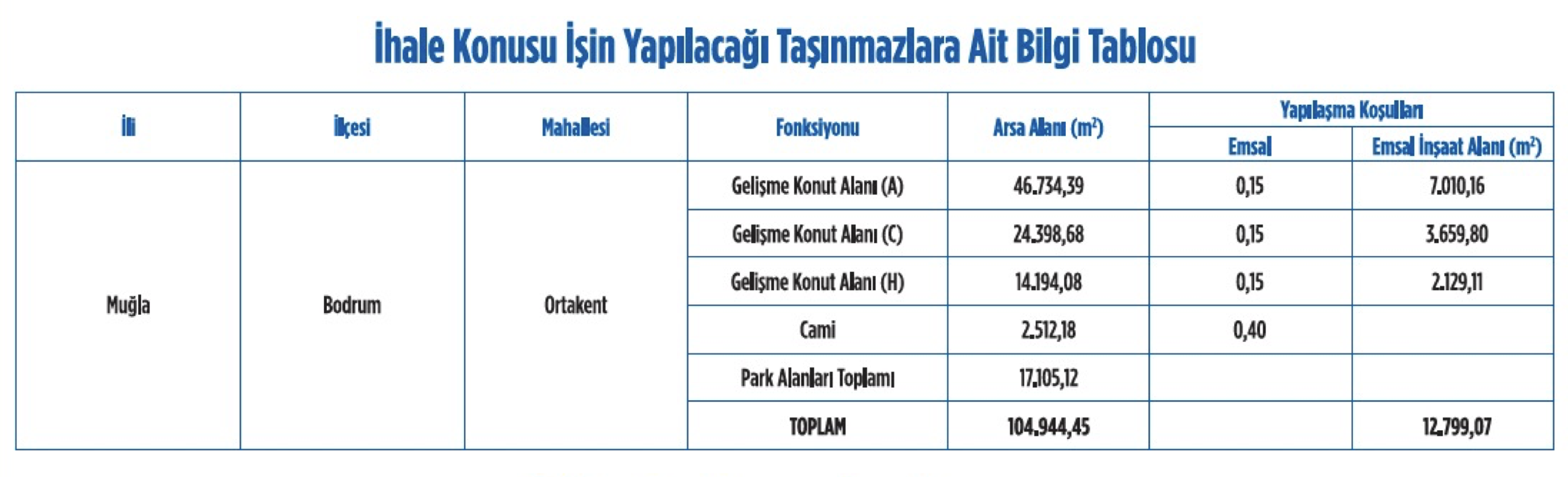 Söz konusu arsanın toplam emsal inşaat alanı ise 12 bin 799,07 metrekare şeklinde belirtildi.