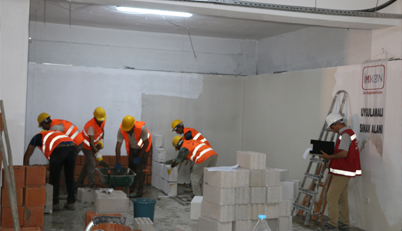Mesleki Yeterlilik belgesi almak için başvuruda bulunanlar Gaziemir’de hem uygulamalı hem de yazılı sınava tabi tutuldu. İMKON’a bağlı eğitmenler tarafından kamera kaydı altında uygulama sınavına giren işçiler akşamüzeri yazılı sınava tabi oldu. İnşaatın farklı branşlarında görev yapan işçiler kendi alanlarıyla ilgili uygulamalı ve yazılı sınava tabi tutuldu. Sınav sonuçları önümüzdeki haftalarda kamera kaydını izleyecek kurul tarafından açıklanacak.