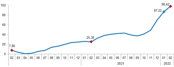 İnşaat maliyet endeksi yıllık değişim oranı (%), Şubat 2022