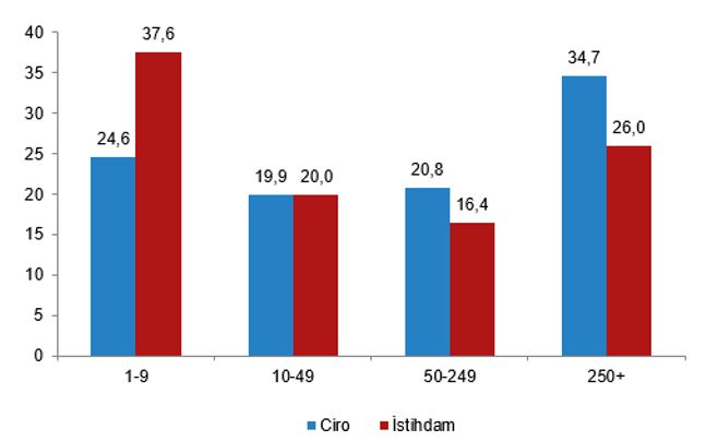 Ciroda en yüksek payı 250+ büyüklük grubu aldı