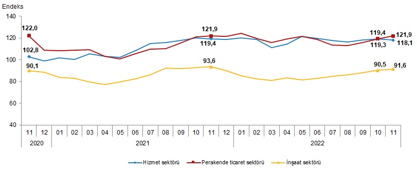 Mevsim etkilerinden arındırılmış güven endeksleri, Kasım 2022