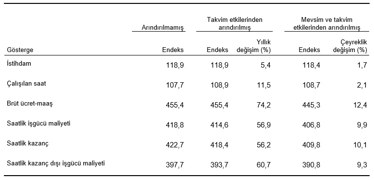 Saatlik kazanç dışı işgücü maliyeti endeksi yıllık %60,7 arttı