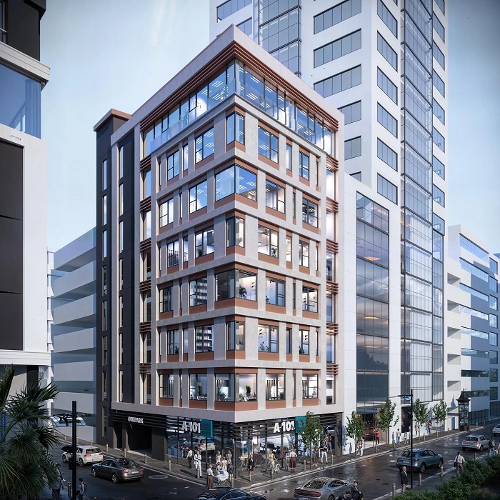 Kentsel dönüşüm kapsamında yenilenecek binanın inşası için tüm kat malikleri anlaşarak yüklenici firma İZKA İnşaat ile protokol imzaladı. İmza törenine; İzmir Yeminli Mali Müşavirler Odası Başkanı Yaşar Zengin, İzmir Eczacı Odası Başkanı Tuncay Sayılkan, İzmir Serbest Muhasebeci ve Mali Müşavirler Odası Başkanı Mehmet Kuzu, diğer kat malikleri Hüseyin Avni Berber ve Emir Kaluti ile yüklenici firma İZKA İnşaat Yönetim Kurulu Başkanı Azat Yeşil katıldı. Yeni binanın çizimlerini ise İzmir’in tanınmış mimarlarından Semiha Güneş yaptı.
