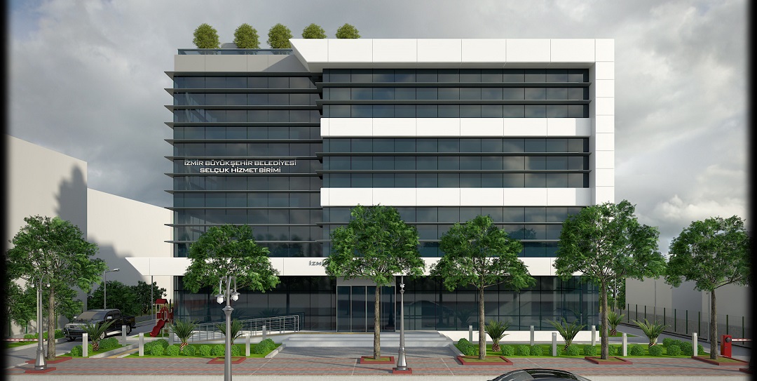 Selçuk Atatürk Mahallesi’nde konumlandırılacak İzmir Büyükşehir Belediyesi hizmet binası, 2.5 dönümlük proje alanında yükselecek. 4 kattan oluşacak yapıda 2 adet toplantı ve eğitim salonunu da yer alacak.