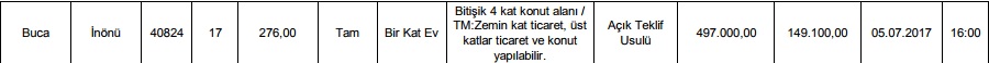 1-Tabloda belirtilen taşınmazların 2886 sayılı Kanunun 45. Maddesine göre satış ihaleleri Hükümet Konağı C Blok Konak/İZMİR adresindeki İzmir Defterdarlığı binasının 1. Katında bulunan toplantı salonunda komisyon huzurunda belirtilen gün ve saatte yapılacaktır.
