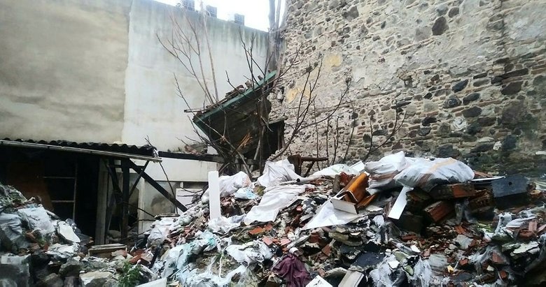 İzmir'in Konak ilçesindeki tarihi bir binanın bir bölümü henüz belirlenemeyen bir nedenden dolayı çöktü.