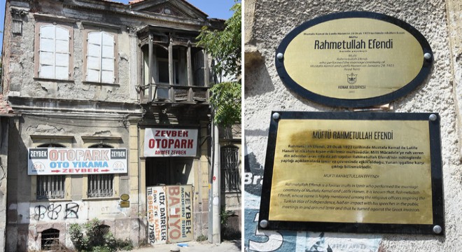 Mustafa Kemal Atatürk ile Latife Hanım'ın nikahını kıyan İzmir'in eski Müftüsü Rahmetullah Efendi'nin 93 yıl önce yaşadığı İzmir'in Konak İlçesi Hatuniye Mahallesi'nde 1301 numaralı sokakta bulunan tarihi evinin duvarlarına otoparkı işaret eden reklam ve