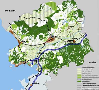 - Çandarlı’da Kuzey Ege Limanı ve tersane yatırımı ile çevredeki yerleşmeler gelişecek, Aliağa ve Bergama’da Organize Sanayi Bölgesi’nin önemi artacak.