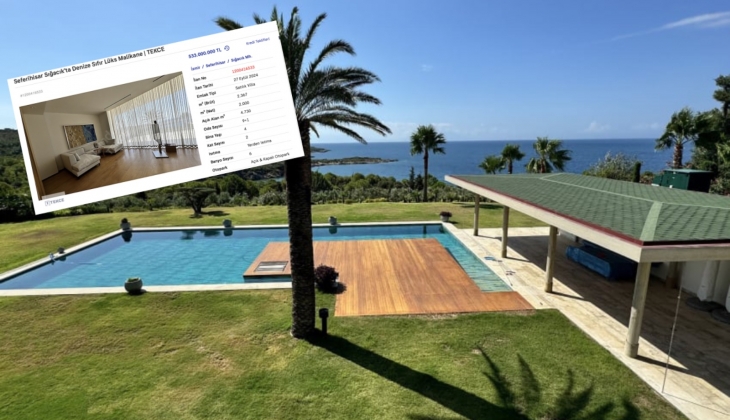İzmir Seferihisar Sığacık’ta yer alan villa 533 milyon TL’ye satışa çıkarıldı. 9 oda 1 salon olan villanın net alanı 2 bin metrekare.