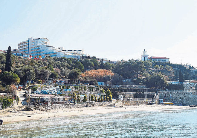 Kuşadası'nda tapu kaydında göçüklük bölgesi, kent imar planlarında heyelan bölgesi olarak işaretlenen, üstelik kıyı kenar çizgisi içinde yer alan arazi tartışma konusu oldu