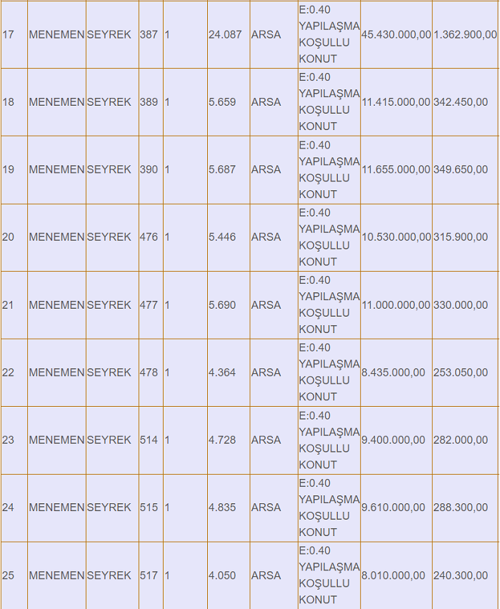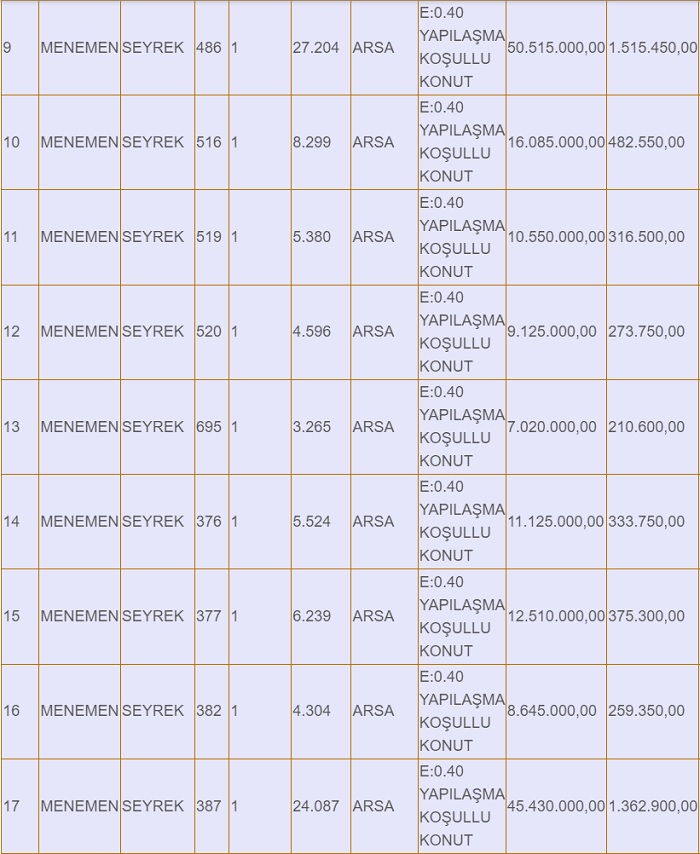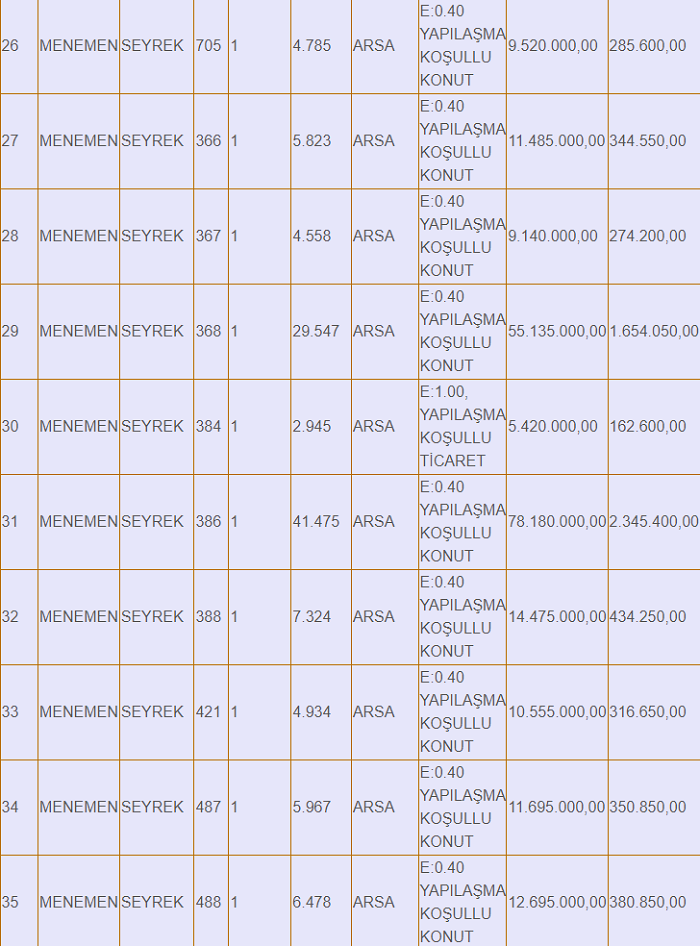 Menemen Seyrek'te (Villakent) 580 dönüm villa imarlı arsayı satışa çıkaran, 252 dönümünün satışı gerçekleştiren Menemen Belediyesi, 628 milyon 435 bin lira değerindeki 37 parseli daha satışa çıkardı. Arsaların kapalı teklif ihalesi 27 Martta gerçekleşecek.