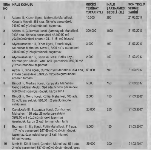 Sümer Holding A.Ş. Genel Müdürlüğü, 7 ildeki 10 taşınmazını özelleştirecek. Gayrimenkullerin son teklif verme günü 21 mart salı günü saat 16.00’ya kadardır.