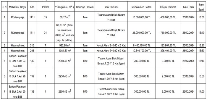 Madde 2- Satılacak olan taşınmaz malların nitelikleri: