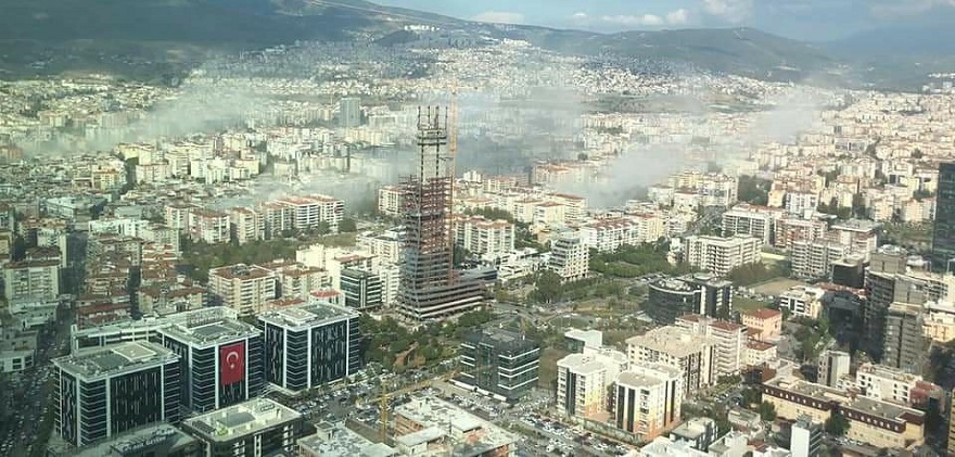 Depremde özellikle Bayraklı’da betonarme binalarda göçmeler, Karşıyaka ve Bornova ilçelerinde de yoğunlaşmış yapısal hasarlar oluştuğunun tespit edildiğinin ifade edildiği raporda, acil yıkım gerektiren ve ağır hasar alan binaların belirlenmesine çalışmasının yapıldığı belirtildi.